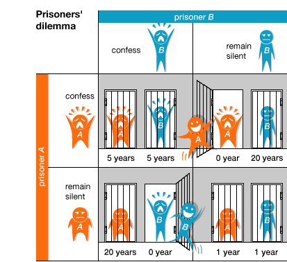 Il prigioniero sa che se starà zitto prenderà una sentenza moderata, purché anche il compagno rimanga in silenzio. Ma se rimane zitto ed il compagno parla prenderà una sentenza pesantissima.
