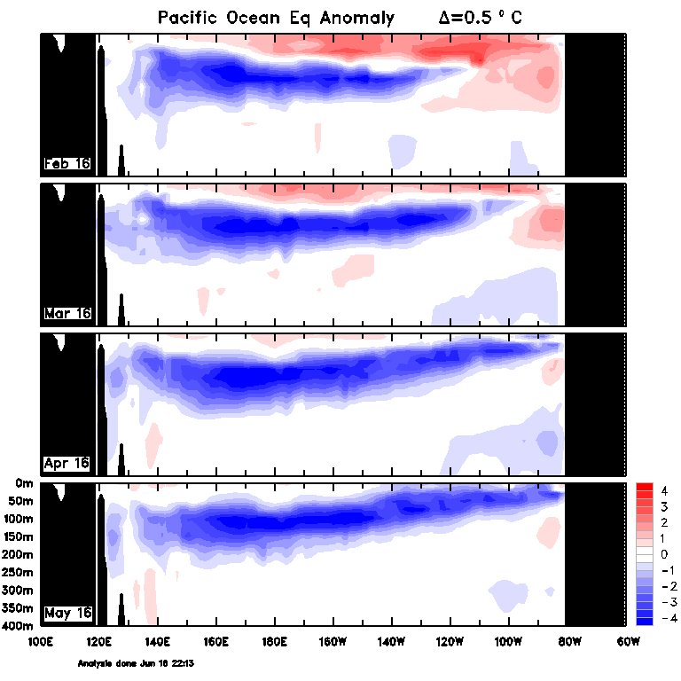 D’altronde la quantità di acqua fredda sommersa che deve emergere, è impressionante quanto lo era quella di acqua calda quando si formò quello che ormai è considerato uno dei El Nino più forti degli ultimi 50 anni.