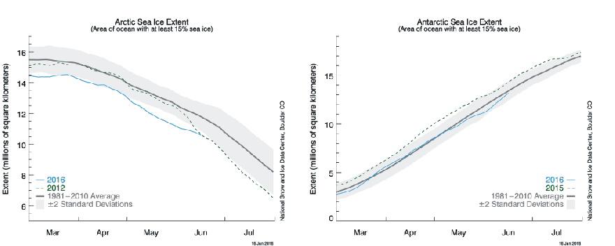 Le conseguenze si sono viste soprattutto sulla quantità di ghiacci marini planetari, che hanno recentemente toccato un minimo piuttosto pesante, ma che ora sono già in recupero: